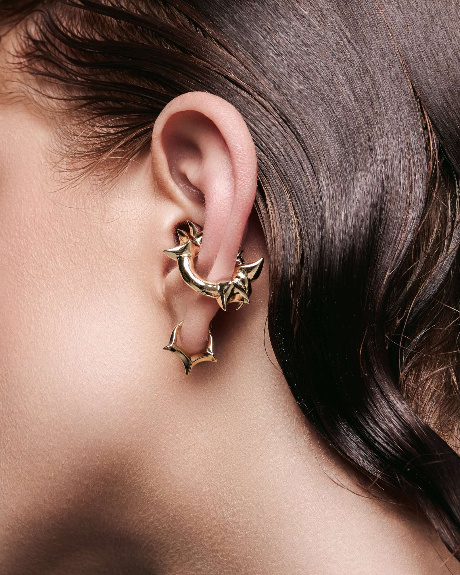 A demi-fine ear cuff forged with winged spires and curved ridges. Each ear cuff features asymmetrical spires and can be worn reversibly. Forged from 925 sterling silver for all genders and expressions. Complete your look with other jewelry from the FORSAKEN series.