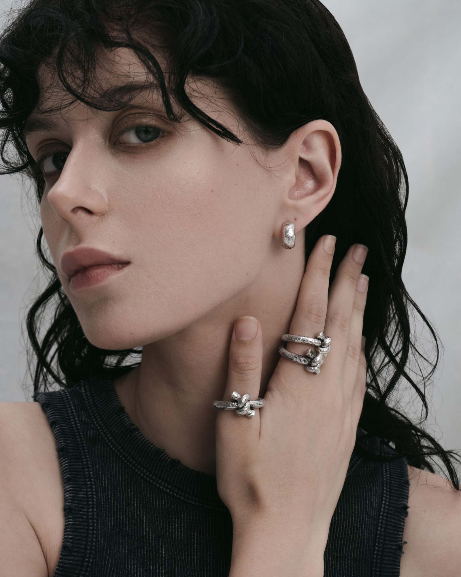 A 925 sterling Silver ring with the design of a folded knot, this demi-fine piece is textured for a light grunge mode. Forged for all genders and expressions.
