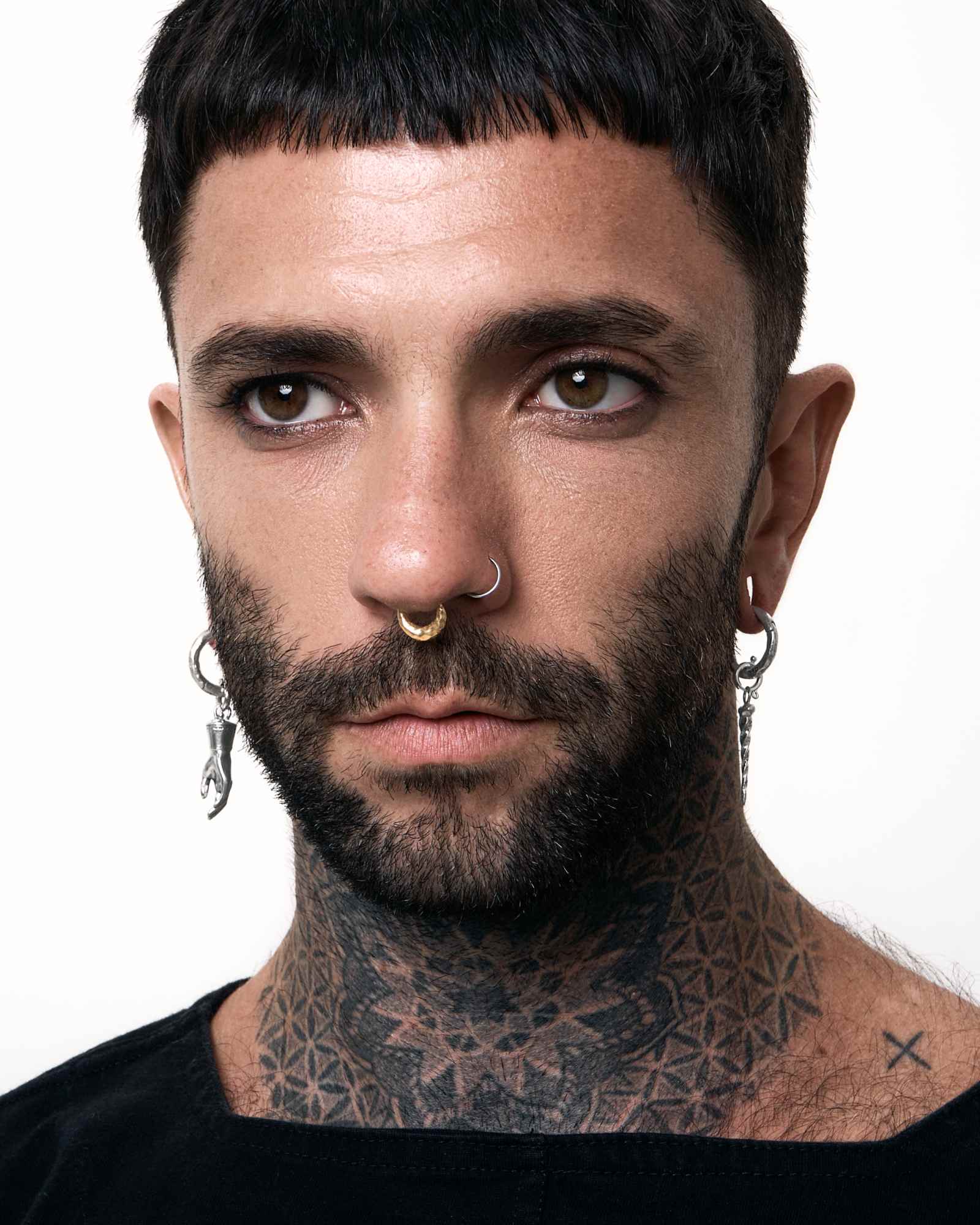 A circular clicker with an amplified drop, burnished and unbridled with a time-honoured texture to match everyday ease. Wearable in your septum, ear, or any piercing that you deem fit.