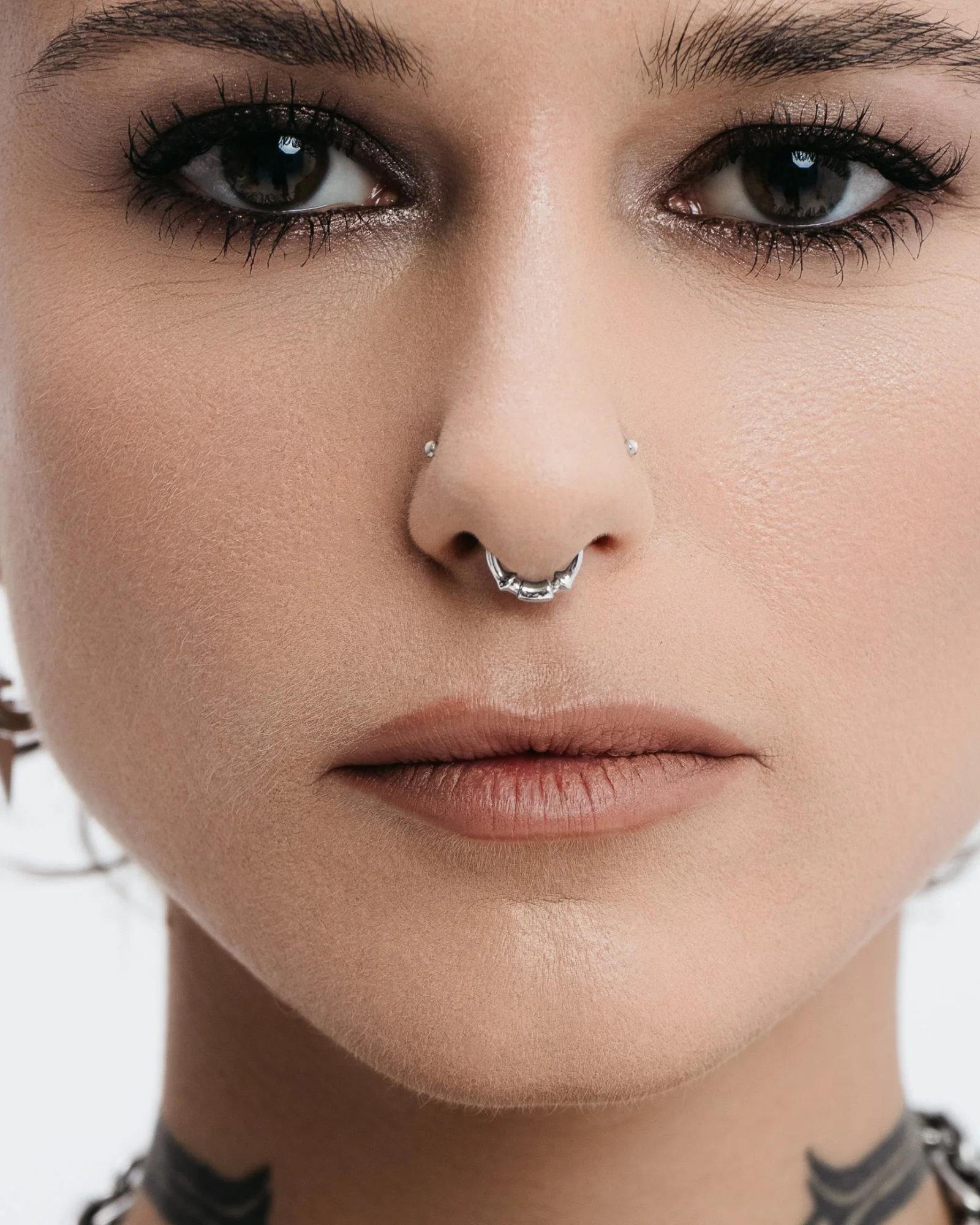 A clicker featuring convex metallic accents with a central sheath. Holds a petite drop that creates the perfect snug fit for those who prefer rings that sit closer to their piercings. Wear it on your septum, daith, lobe, or any piercing you deem fit. Forged for all genders and expressions.